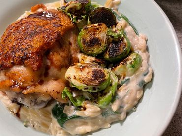 One of our favorite combined things is plays on words; we decided to name our business after the French term "a ju," which translates to "with sauce." While our name is a conjunction of our names to sound like the fancy term, we also like to think of it as a dining experience "with Alex and Juliette."